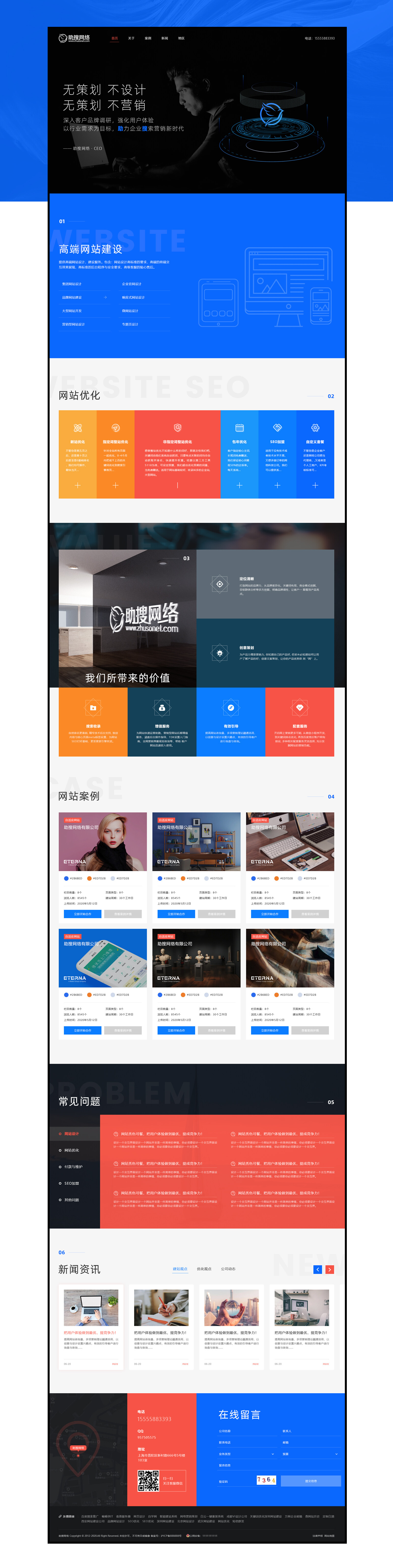網(wǎng)站整體配色方面,在使用主藍(lán)色為主的情況下使用灰色為輔色,兩種顏色的搭配會(huì)產(chǎn)生強(qiáng)烈的對(duì)比感突出主體內(nèi)容的同時(shí),更強(qiáng)化高端與視覺(jué)聚焦的效果。
