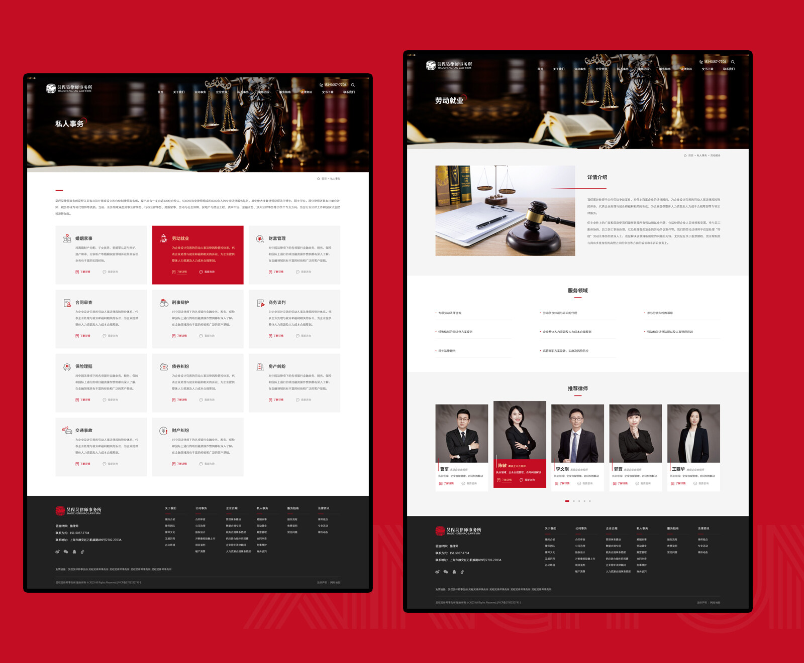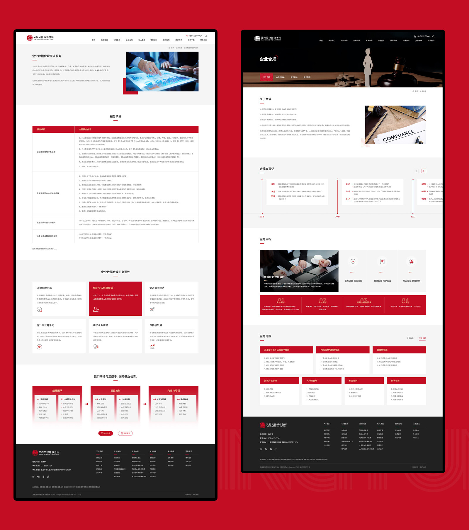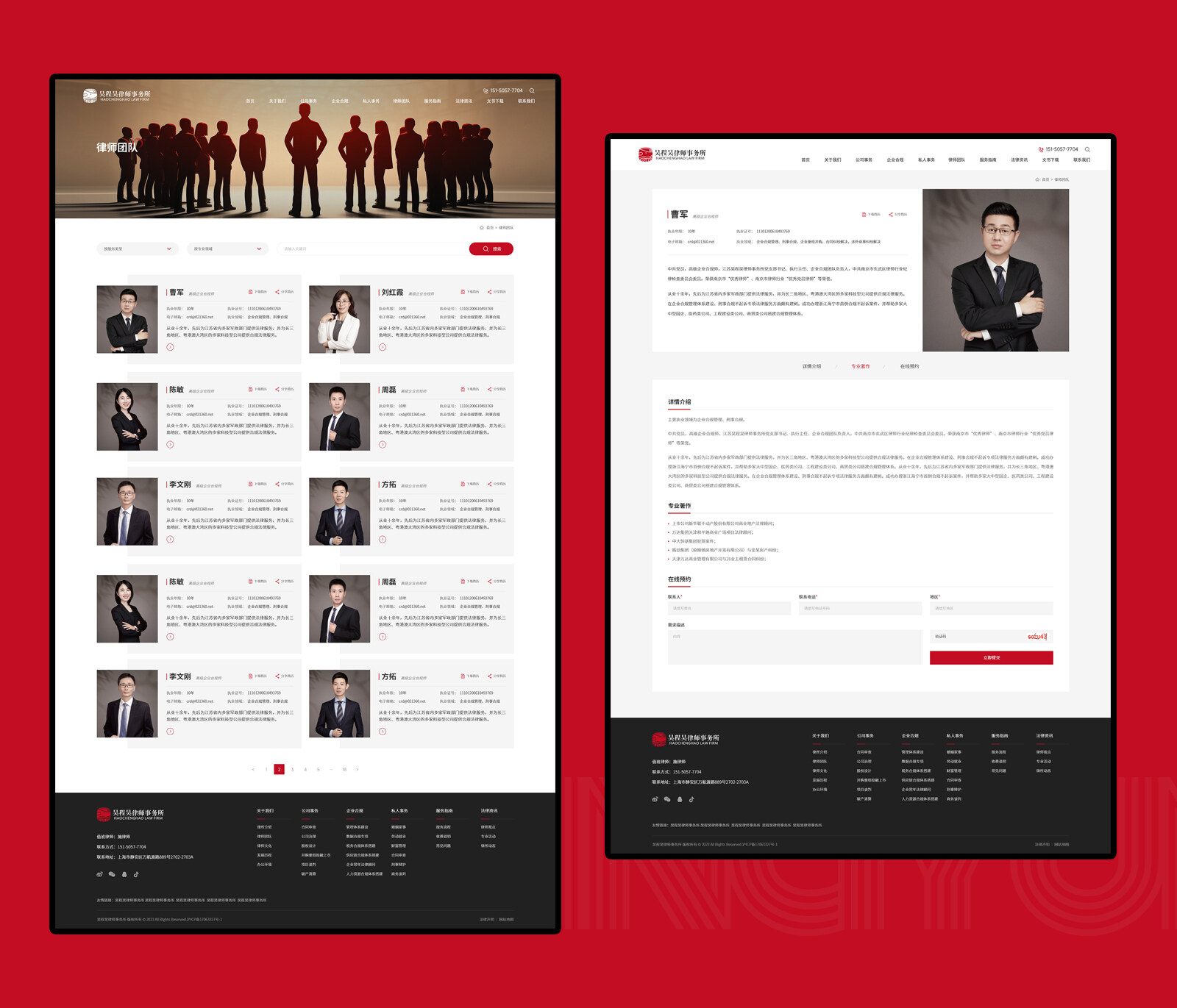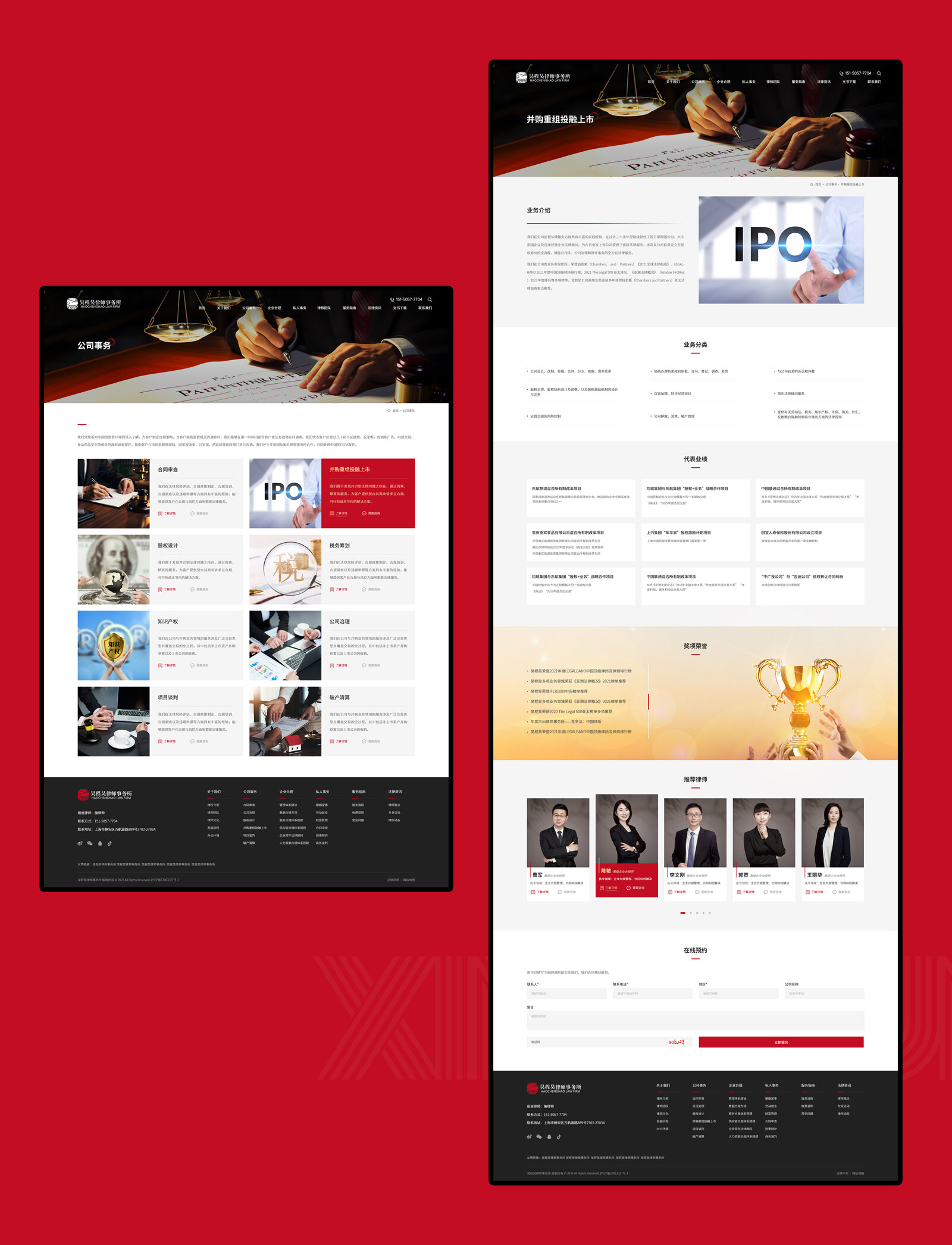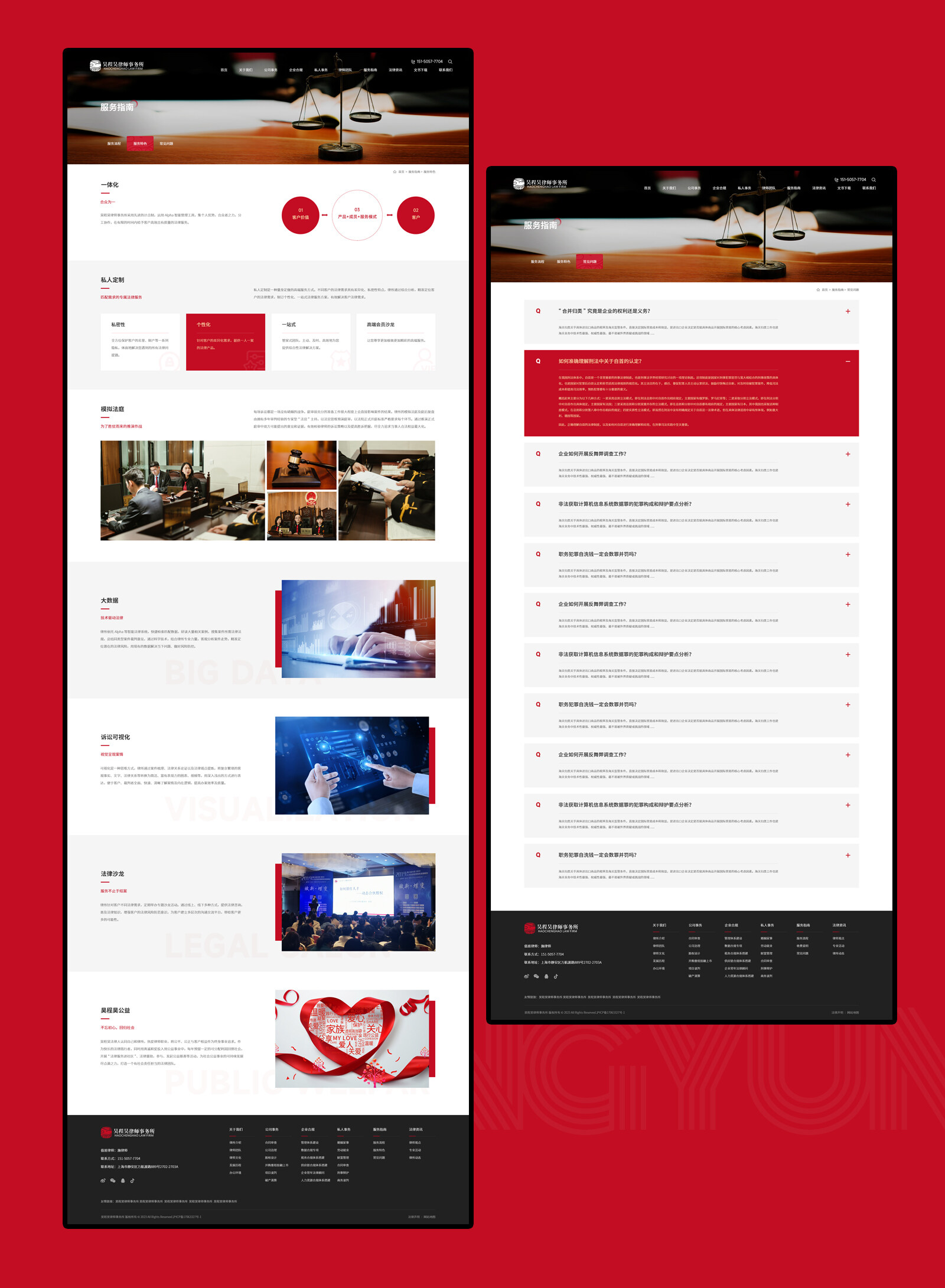 網站整體配色方面,在使用主VI墨紅色為主的情況下使用金色為輔助色,兩種顏色的搭配會產生強烈的對比感突出主體內容的同時,更強化高端與視覺聚焦的效果