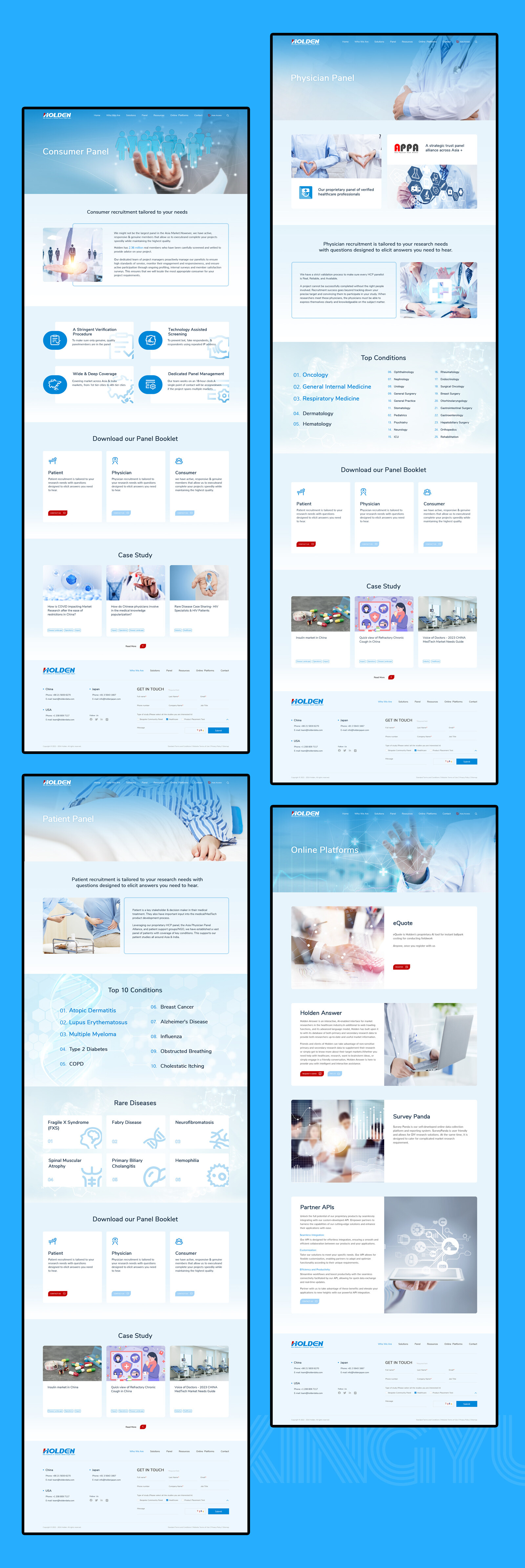 網站整體配色方面,在使用主VI企業藍為主的情況下使用紅色為點綴色,兩種顏色的搭配會產生強烈的對比感突出主體內容的同時,更強化高端與視覺聚焦的效果