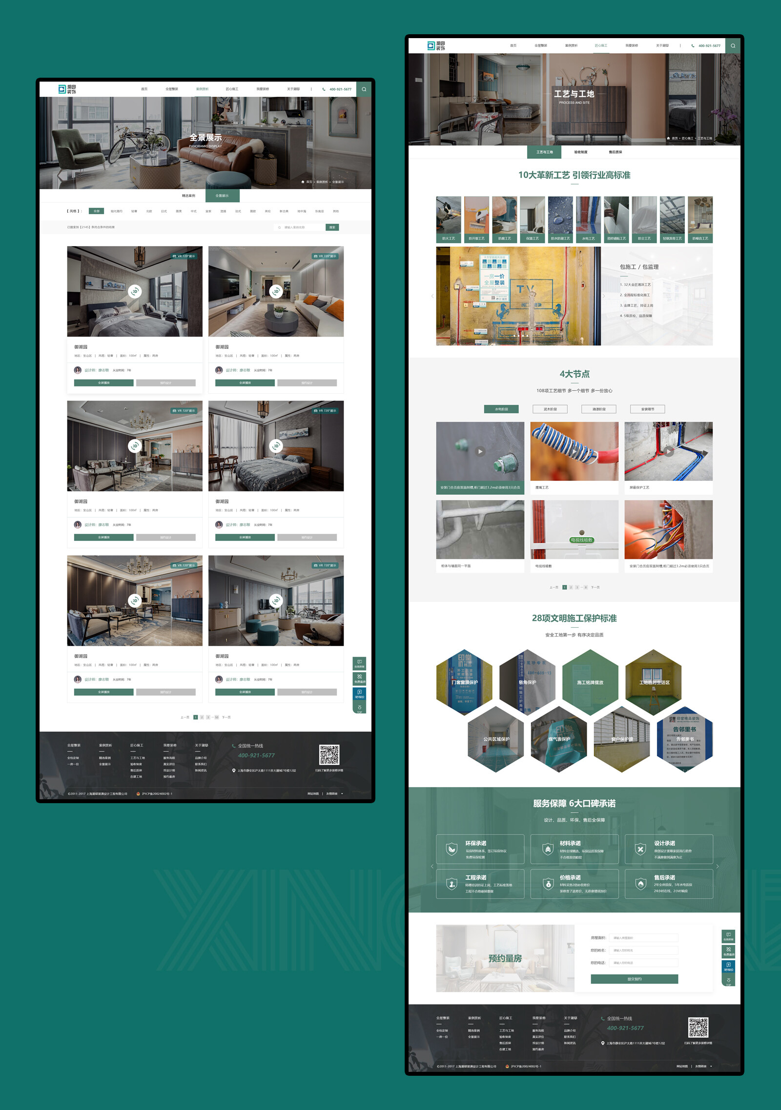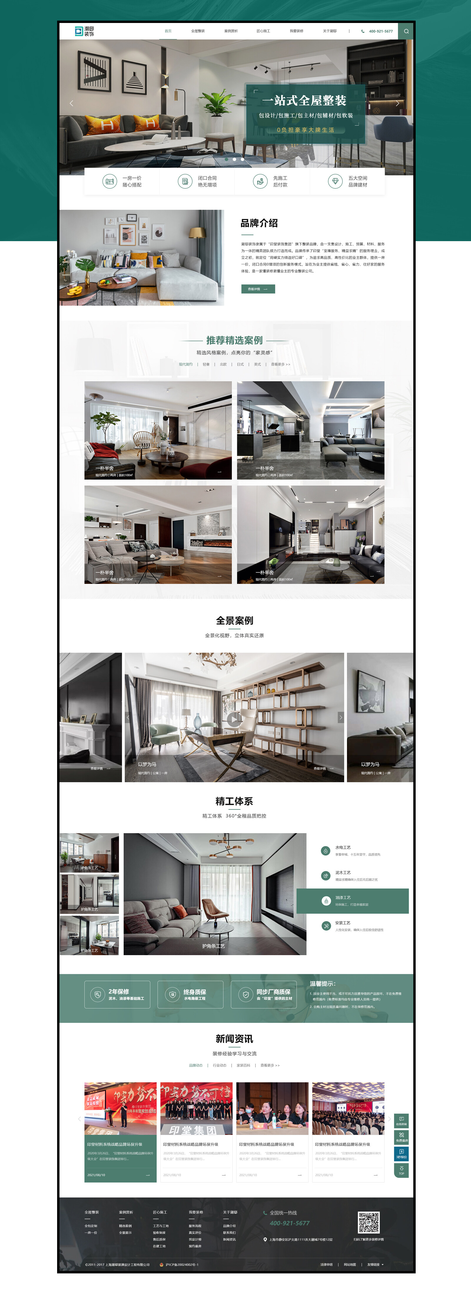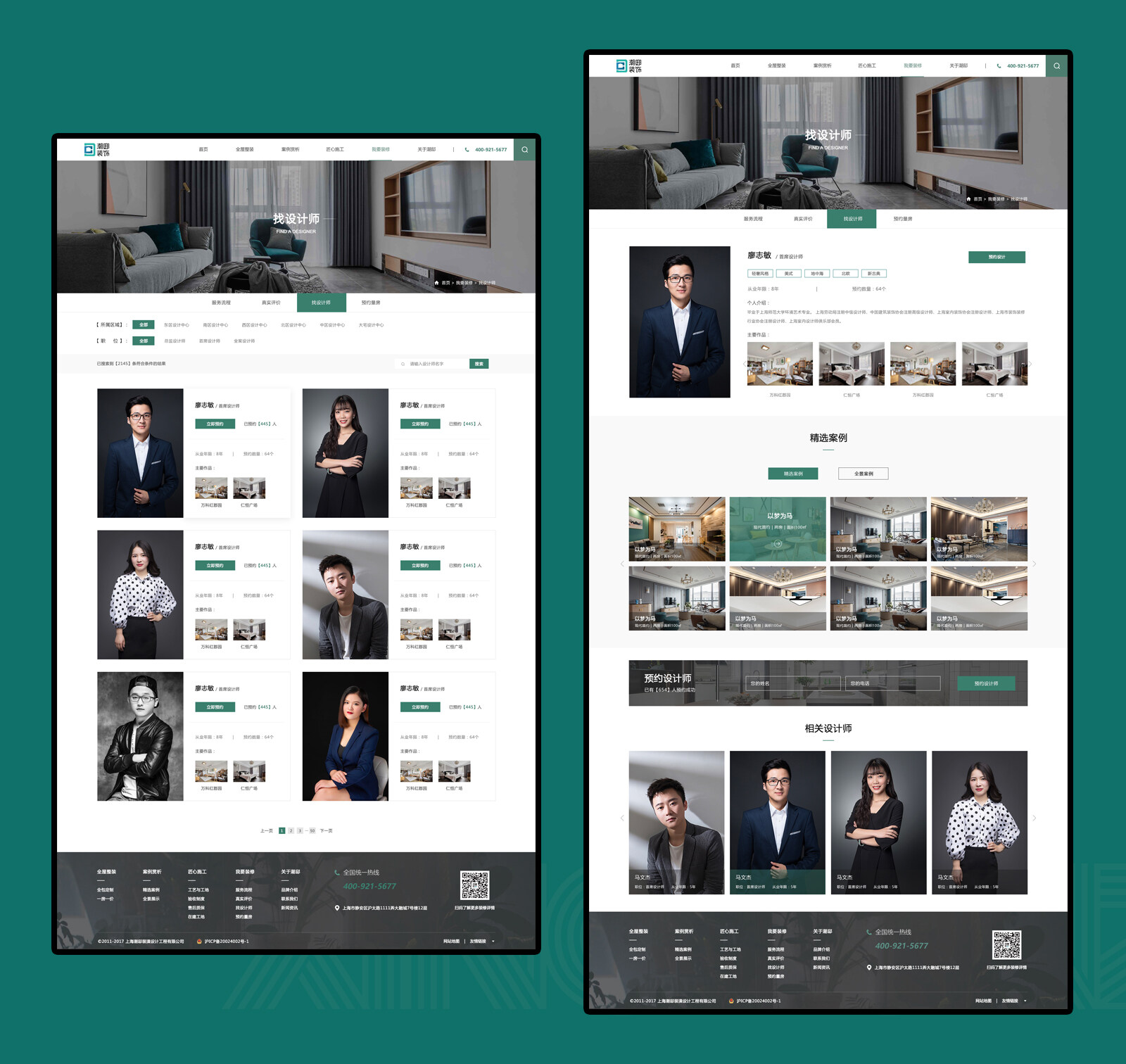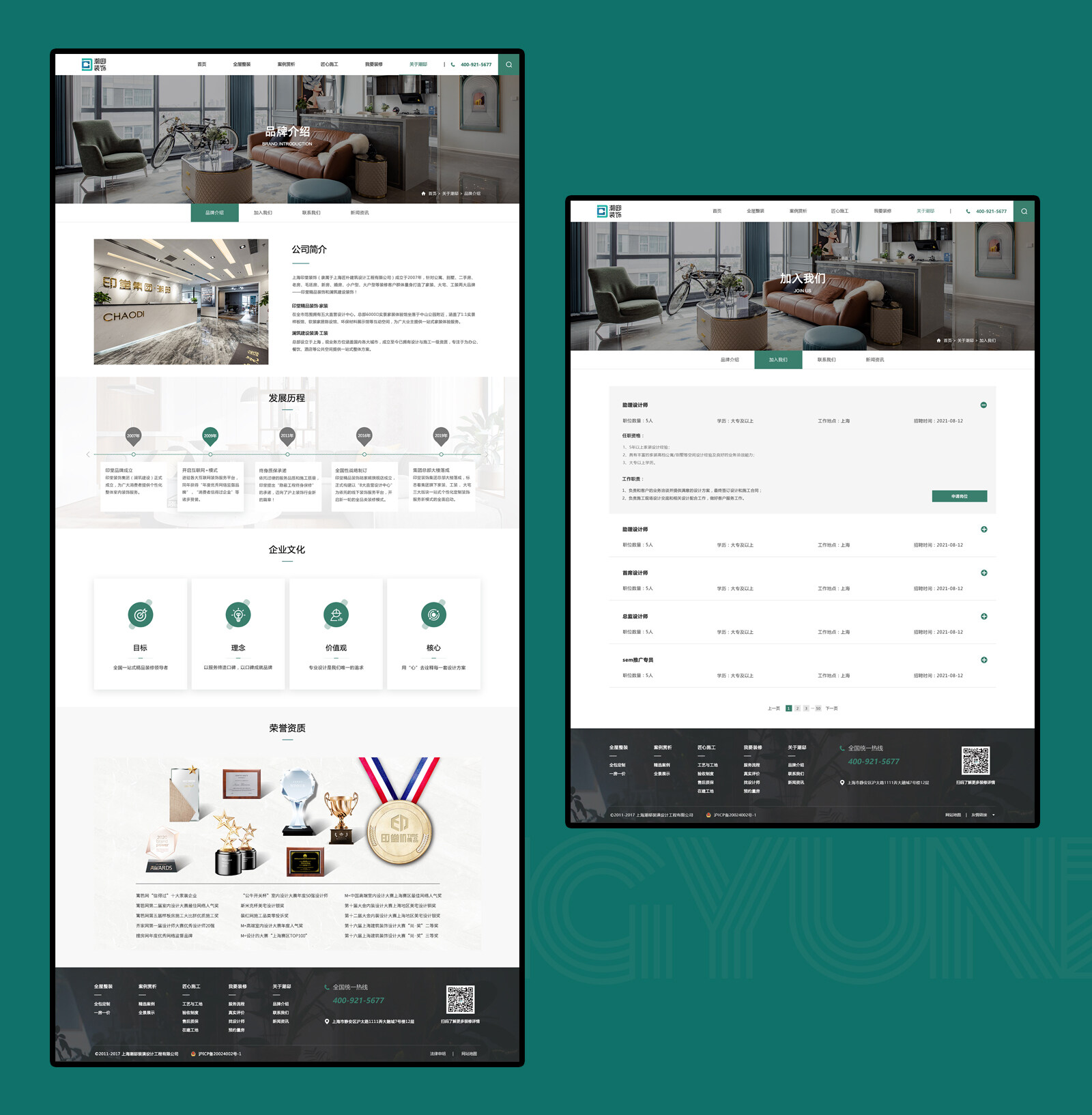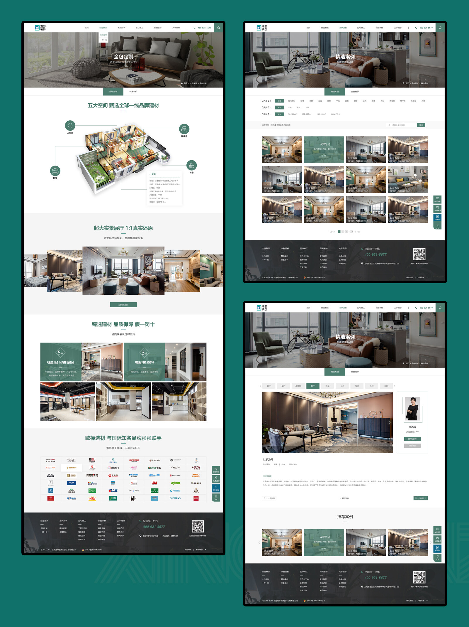 網站整體配色方面,在使用墨綠色色為主的情況下使用白色為輔色,多種顏色的搭配會產生強烈的對比感突出主體內容的同時,更強化高端與視覺聚焦的效果。