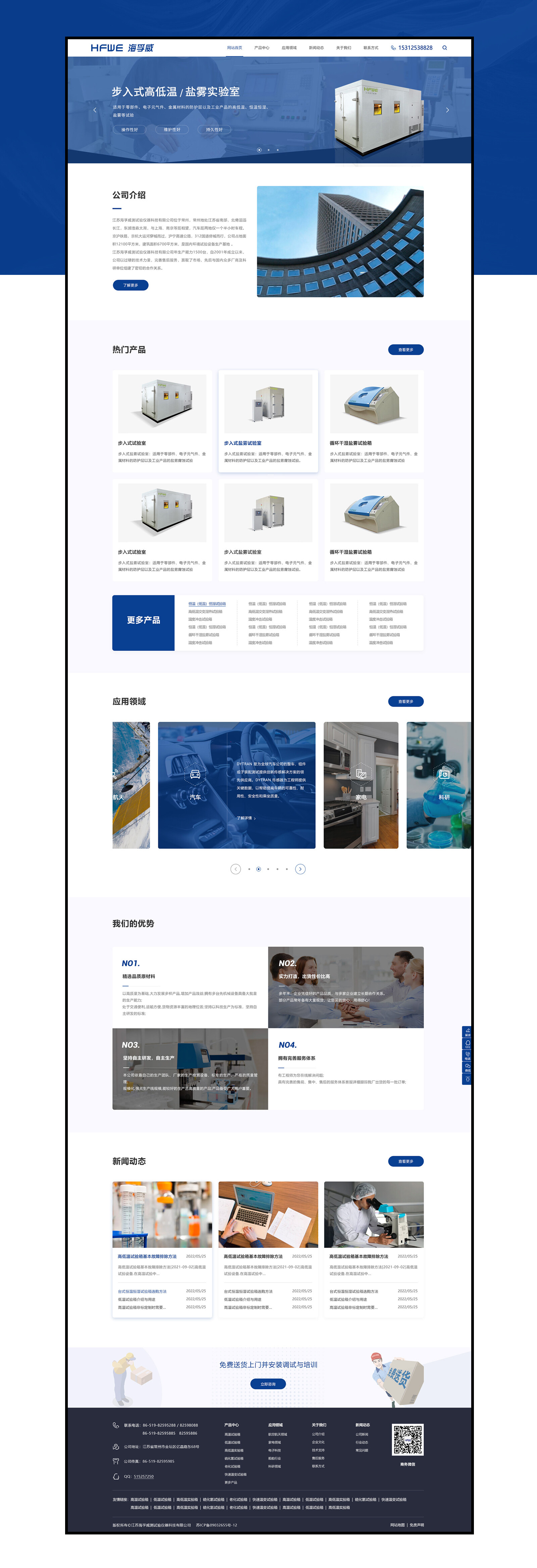 網站整體配色方面,在使用主藍色為主的情況下使用白色為輔色,兩種顏色的搭配會產生強烈的對比感突出主體內容的同時,更強化高端與視覺聚焦的效果。