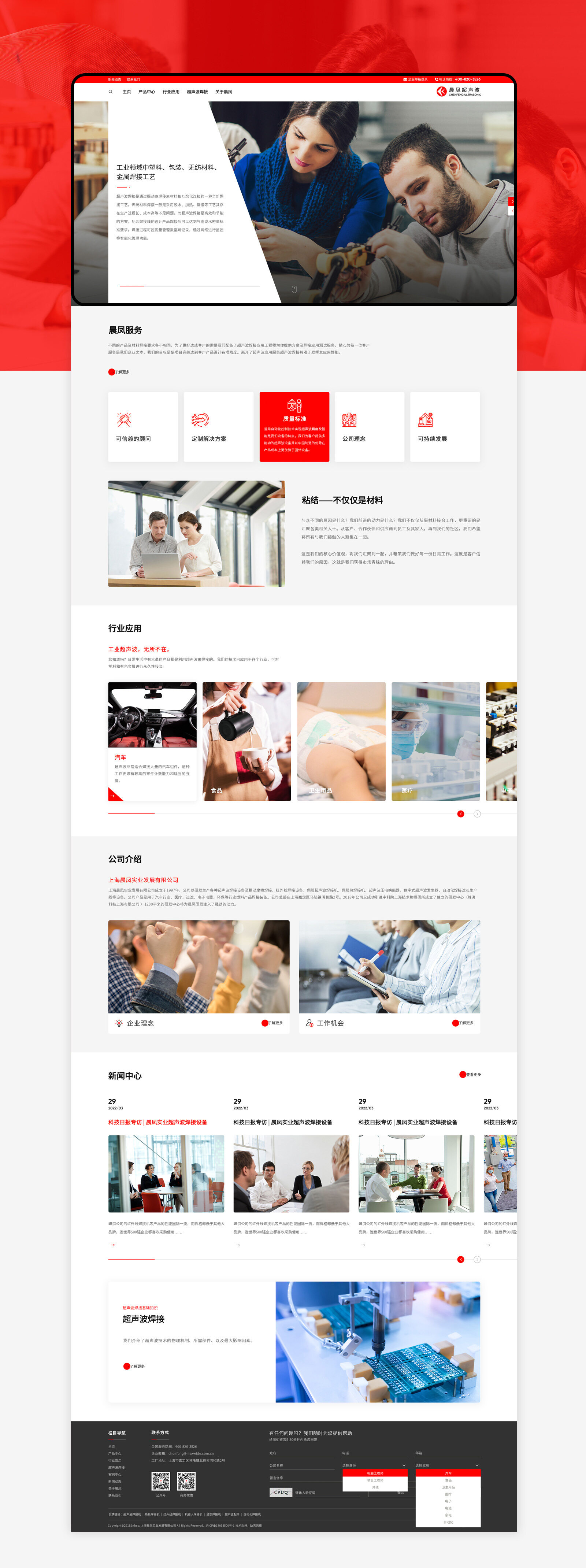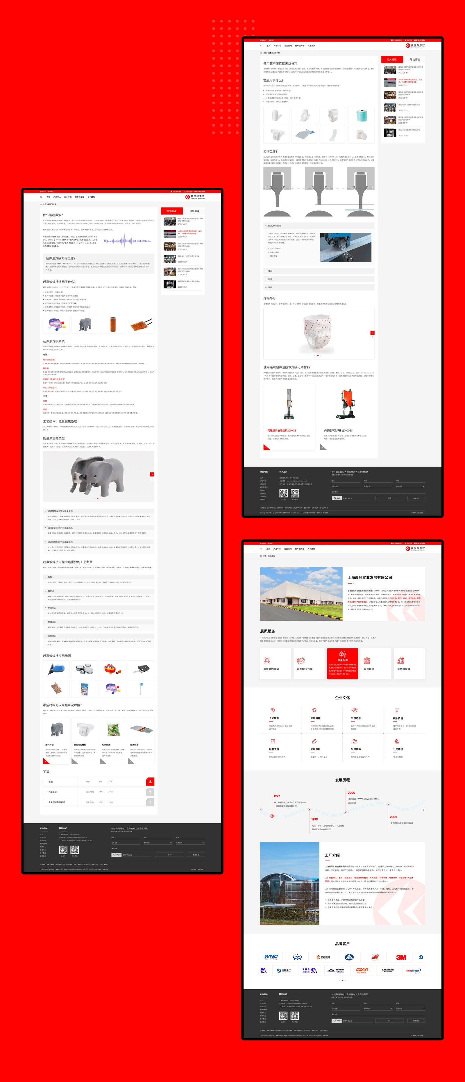 網(wǎng)站整體配色方面,以主VI紅色為主的情況下使用灰色和白色為背景,多種顏色的搭配會產(chǎn)生強(qiáng)烈的對比感突出主體內(nèi)容的同時,更強(qiáng)化高端與視覺聚焦的效果。