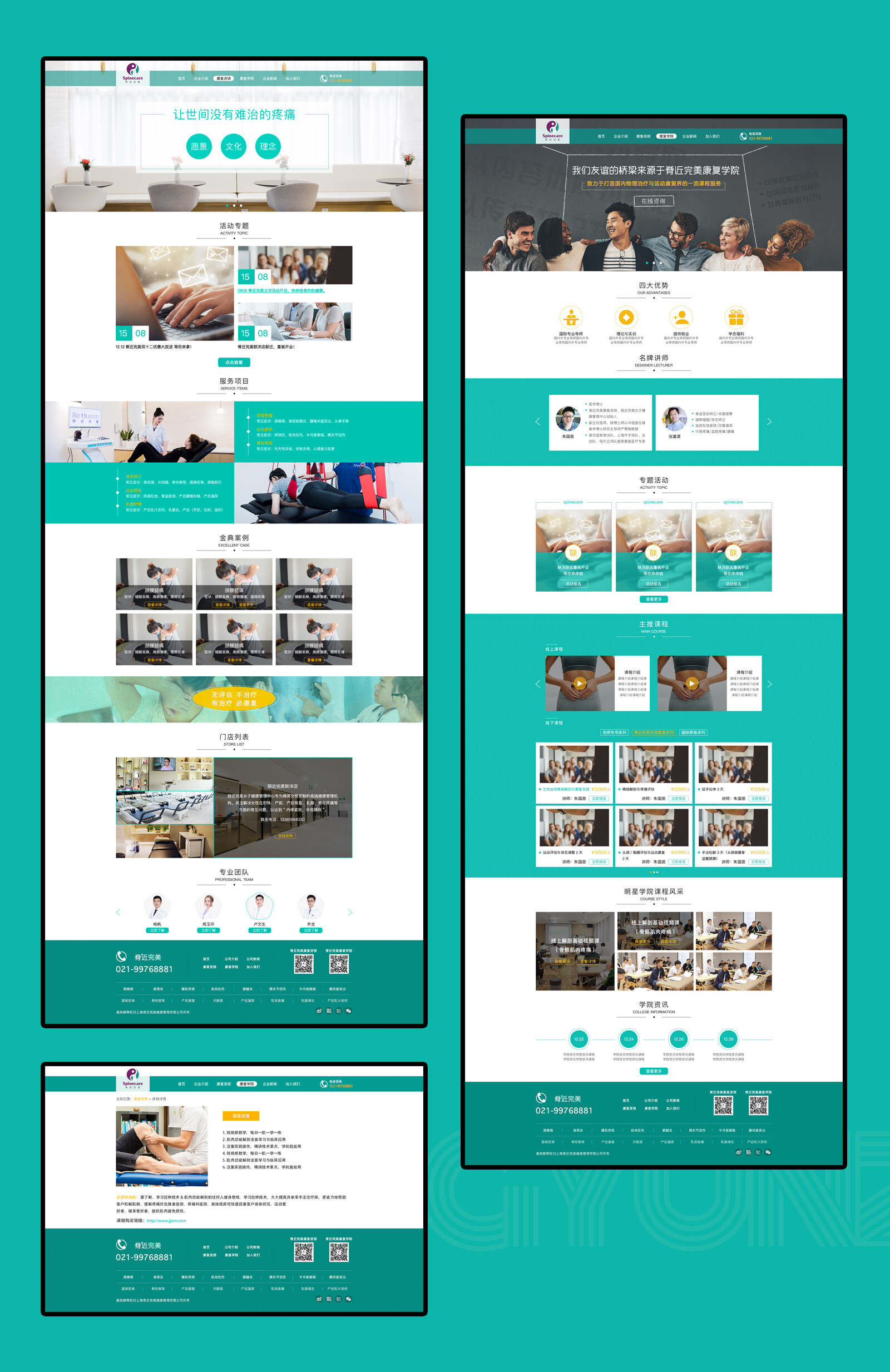 網站整體配色方面,在使用主淺綠色為主的情況下使用黃色為輔色,兩種顏色的搭配會產生強烈的對比感,突出主體內容的同時更強化高端與視覺聚焦的效果。