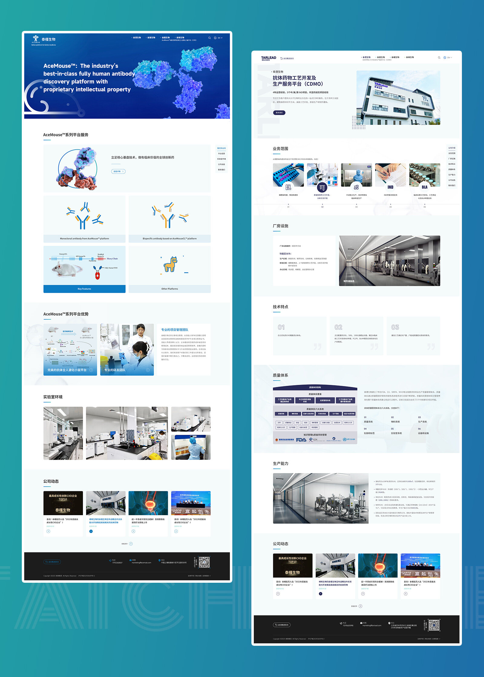 網站整體配色方面,在使用主VI藍色為主的情況下使用白色為背景,兩種顏色的搭配會產生強烈的對比感突出主體內容的同時,更強化高端與視覺聚焦的效果。